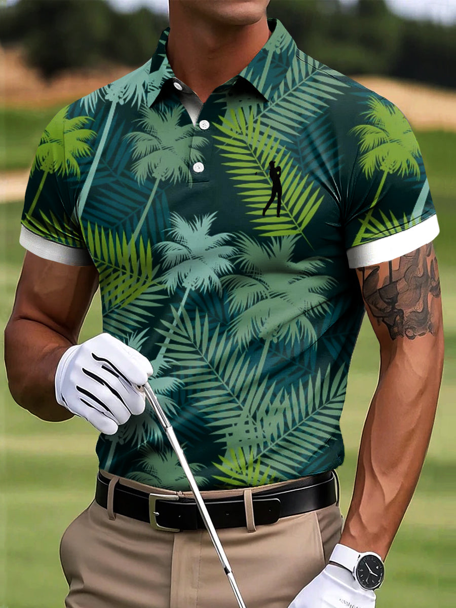 Męska koszulka polo z motywem tropikalnego drzewa kokosowego Art Print Casual Business