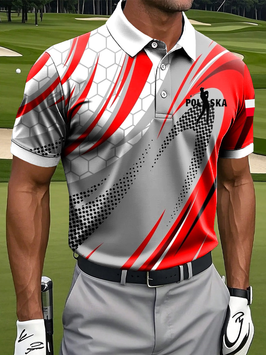 Męska koszulka polo z nadrukiem abstrakcyjnej linii w stylu vintage