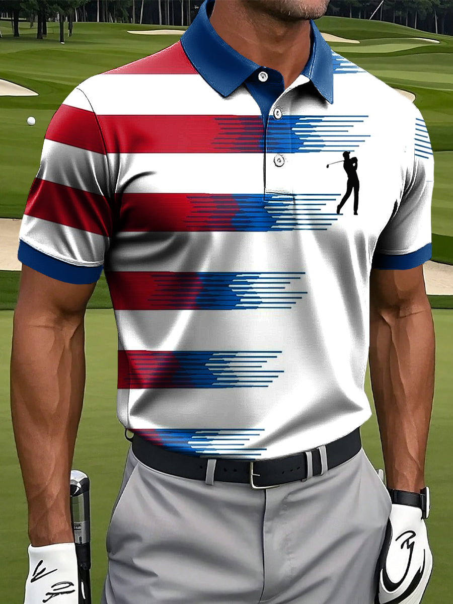 Męska koszulka polo z nadrukiem artystycznym w stylu retro w kolorze gradientu