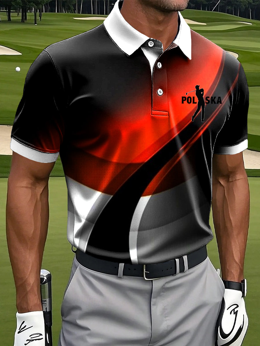 Męska koszulka polo z nadrukiem artystycznym w stylu vintage z polskiej linii gradientu