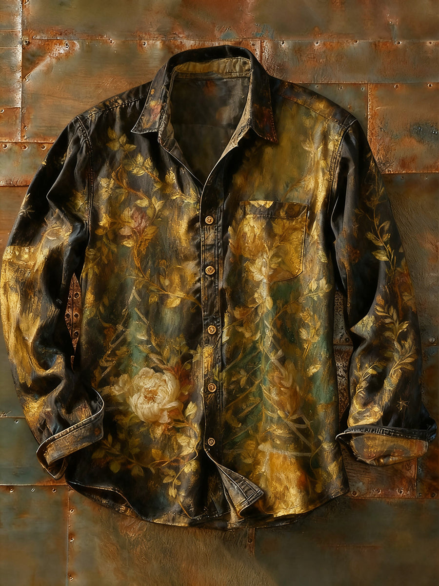 Męska koszulka z długim rękawem w stylu retro w stylu abstrakcyjnym