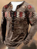 Retro Western Highway tekstura wzór z nadrukiem Village V-Neck Koszula z długim rękawem w stylu Henry