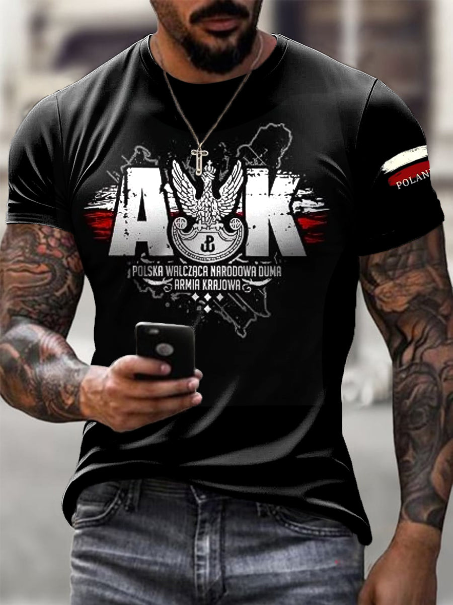 Męska koszulka z nadrukiem w stylu retro Polski Home Town w stylu wojskowym