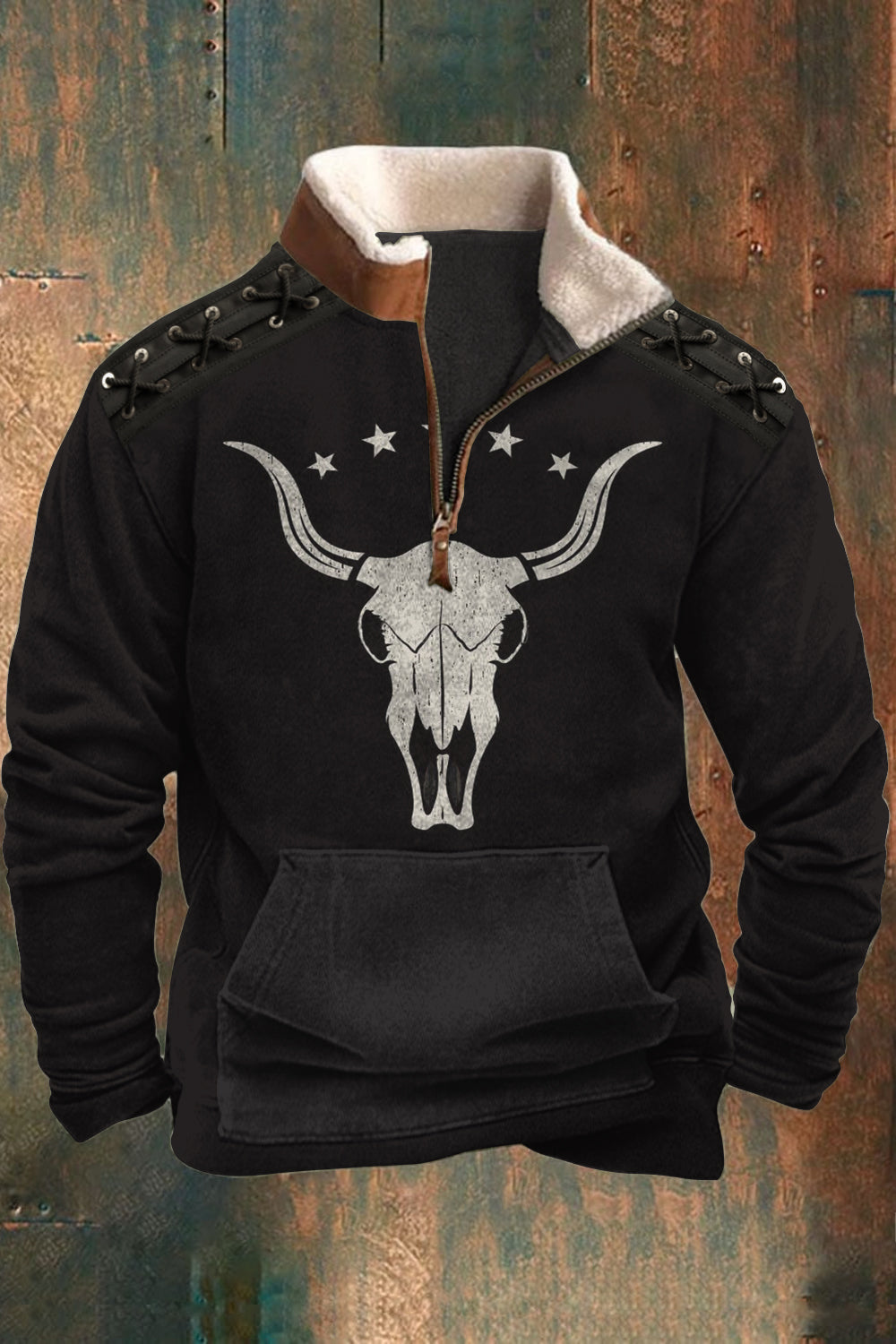 Męska modna w stylu vintage zachodni kowboj w 3D z futrzany kołnierzykiem na zamek błyskawiczny Bluza na świeżym powietrzu