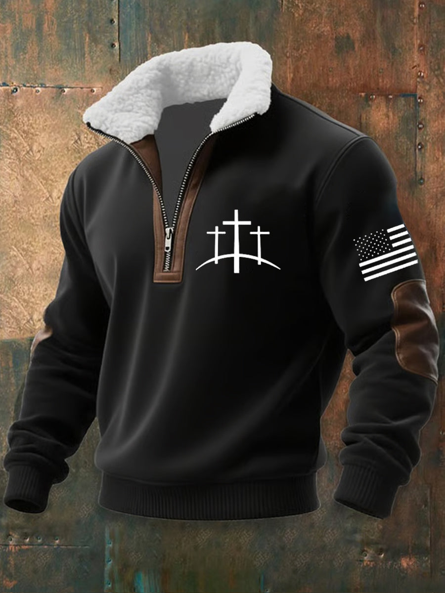 Męski Vintage Art Faith Casual Futro Kołnierz Gruba Bluza