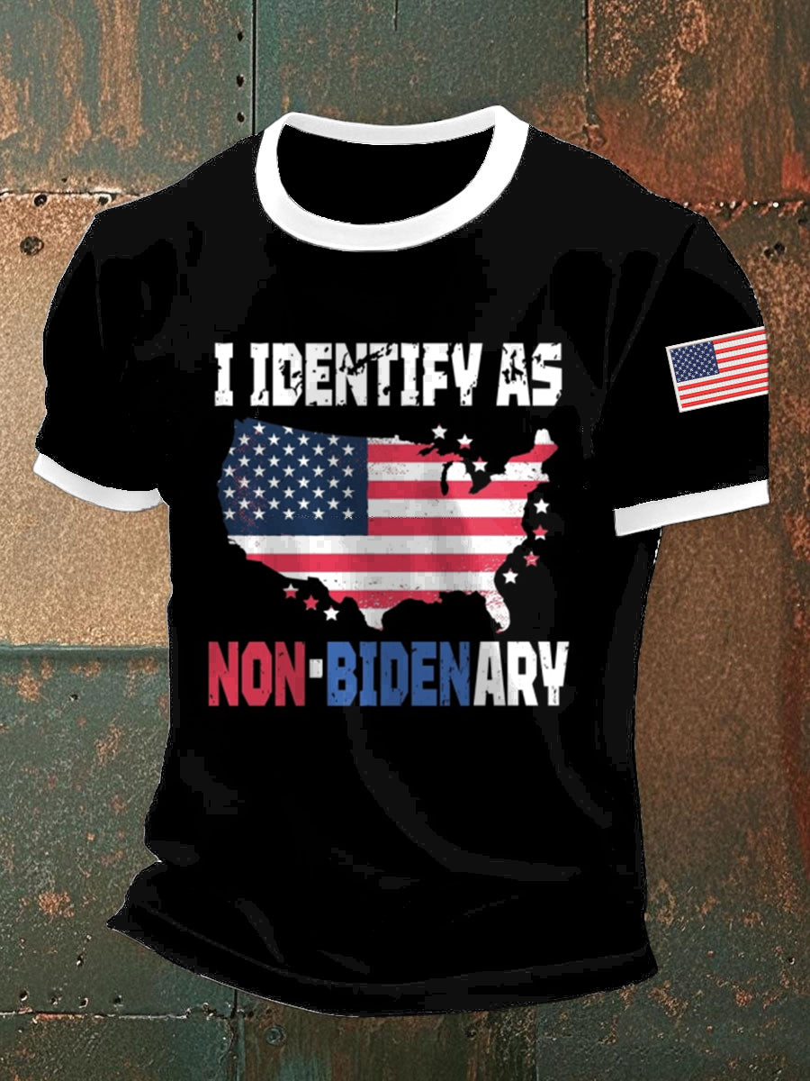 Męski vintage I identyfikuje się jako niebidenny abstrakcyjny nadruk Casual Cotton z krótkim rękawem T-Shirt
