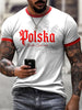 Męski Vintage Polski Orzeł Biały Abstrakcyjny Nadruk Casual T-Shirt