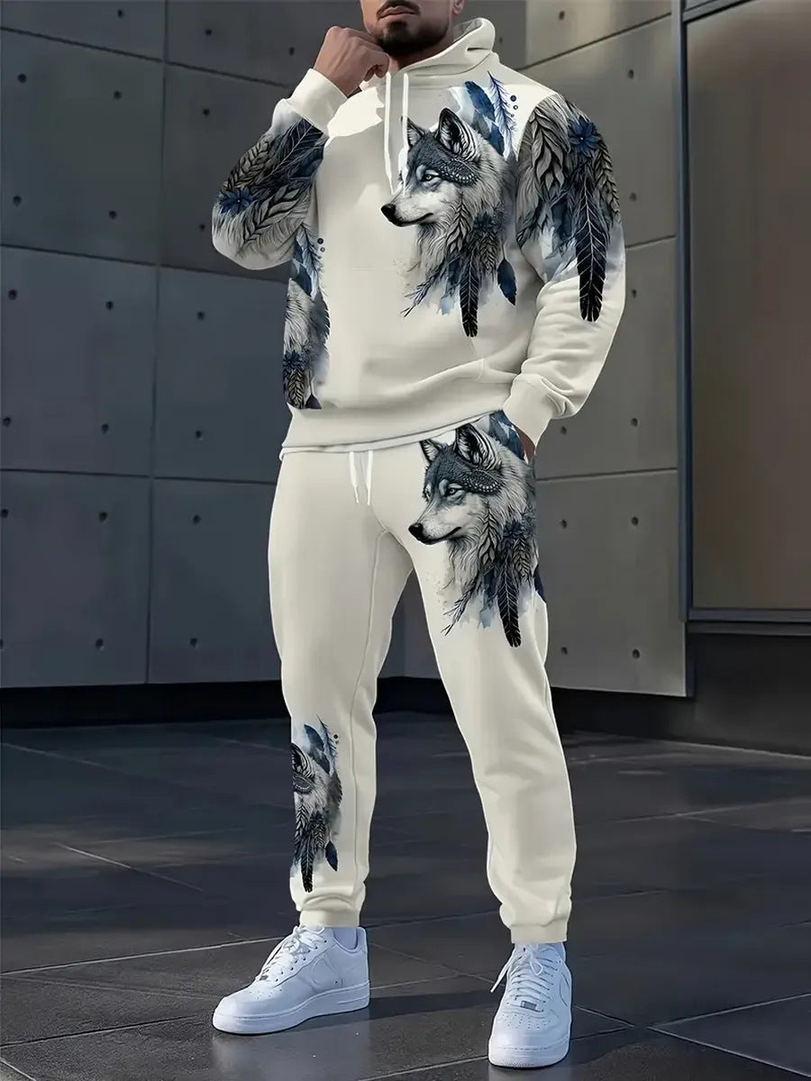 Męski zestaw bluzy z kapturem w stylu retro