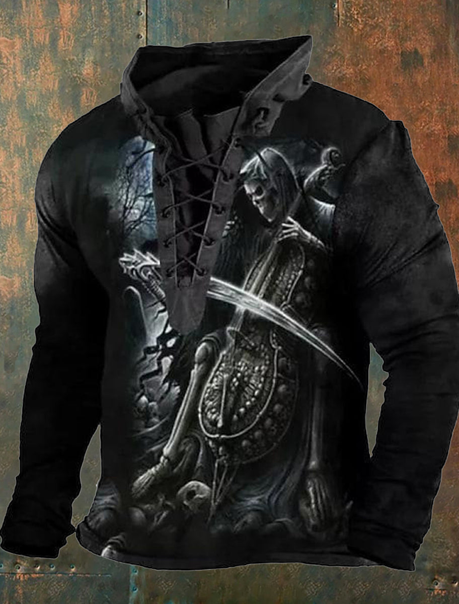 Męska koszulka z długim rękawem w stylu retro z wysokim dekoltem w stylu zachodnim