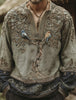 Retro Western Highway tekstura wzór z nadrukiem Village V-Neck Koszula z długim rękawem w stylu Henry