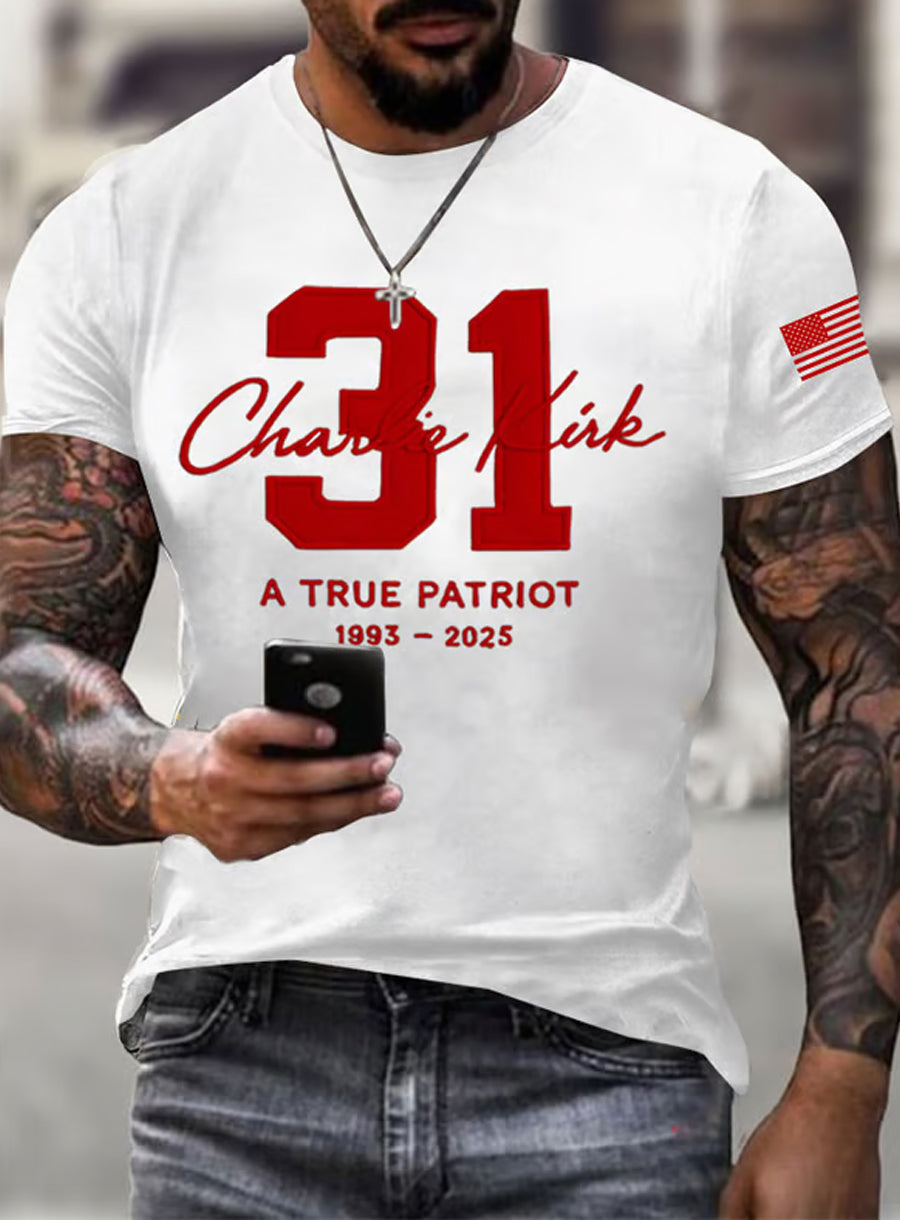 Męskie Vintage Freedom American Casual Pamiątkowy krótki rękaw