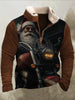Męski Vintage Motocykl Santa Art 3D Print Retro Futro Kołnierz Suwak Flush Outdoor Bluza