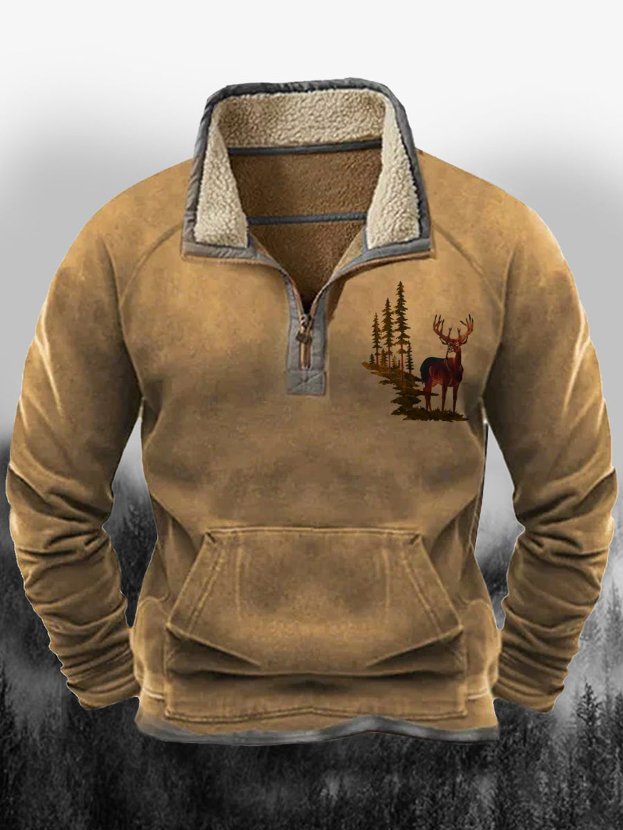 Luźna luźna bluza z nadrukiem męska klapa z motywem łosia i zamkiem błyskawicznym