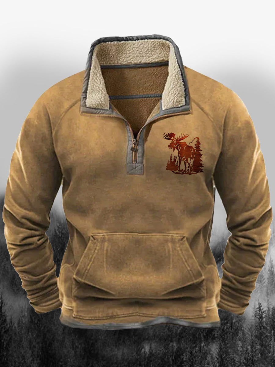 Luźna luźna bluza z luźnym kołnierzem dla mężczyzn West Cowboy Elk Print