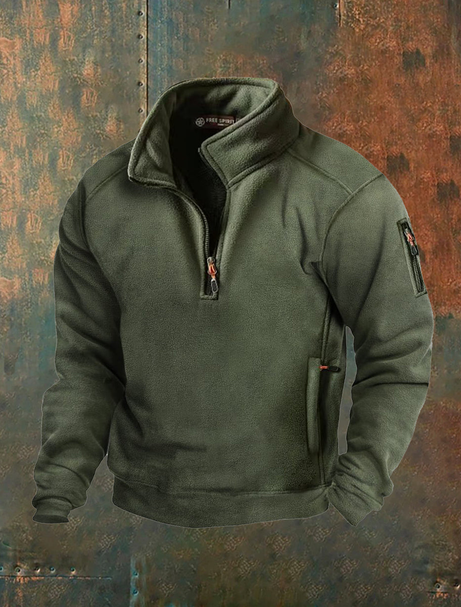 Męska koszulka sportowa typu bluza z taktycznym swetrem z kołnierzem typu Henry Stand Collar Retro Outdoor Casual Zipper