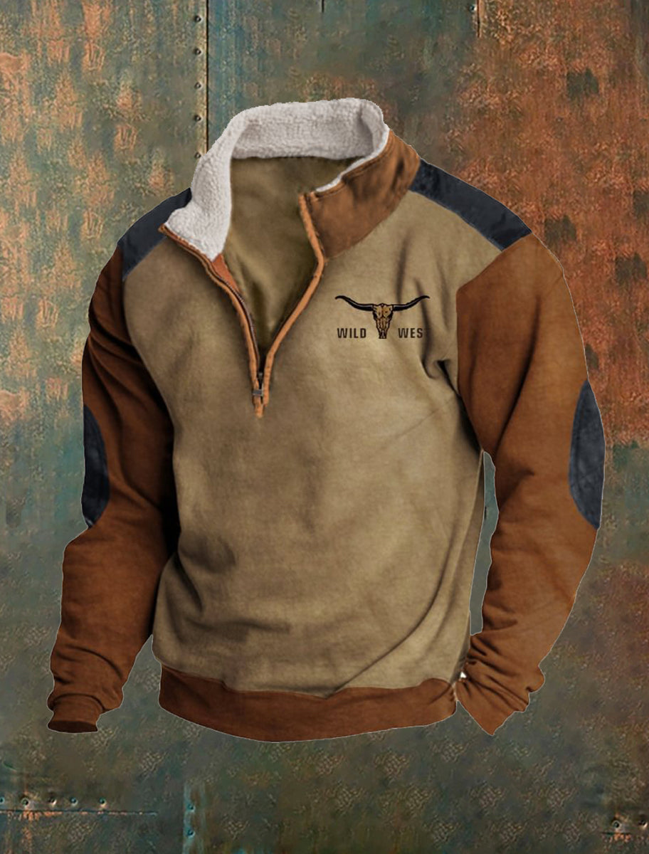 Męska koszulka z długim rękawem w stylu retro z wysokim dekoltem w stylu zachodnim