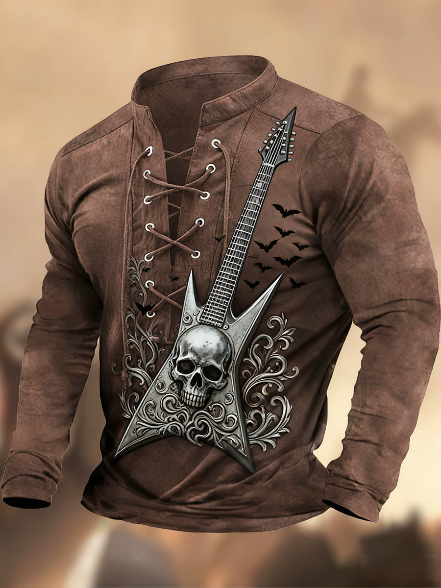 Męska koszulka z długim rękawem w stylu retro z wysokim dekoltem w stylu zachodnim