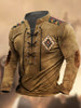 Vintage Western Art Print Koszula z długim rękawem w stylu wiejskim z dekoltem w szpic Henley