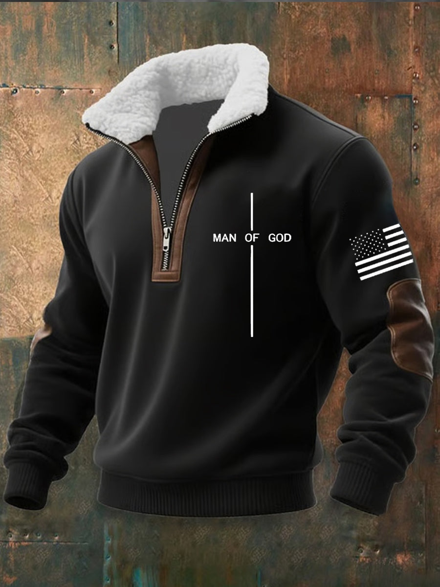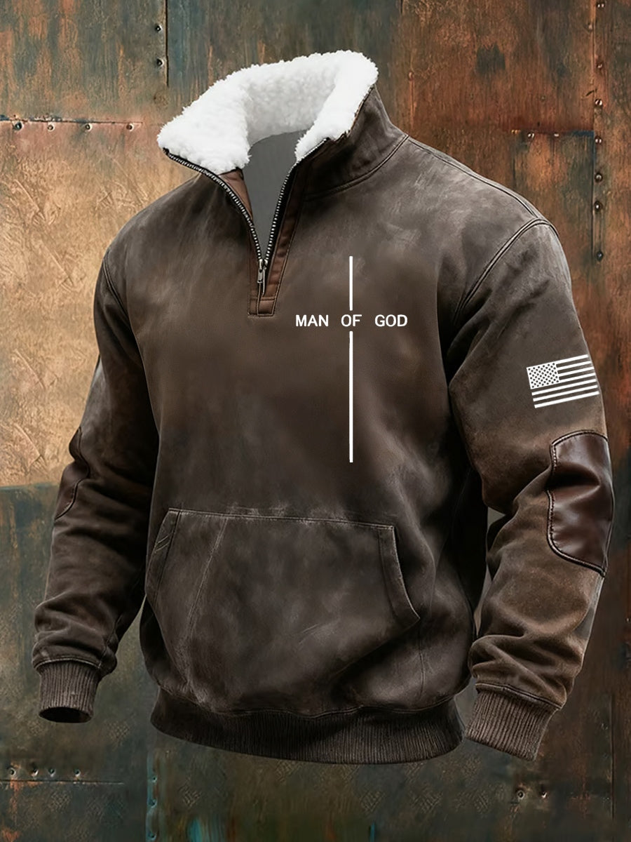 Męski Vintage Art Faith Casual Futro Kołnierz Gruba Bluza
