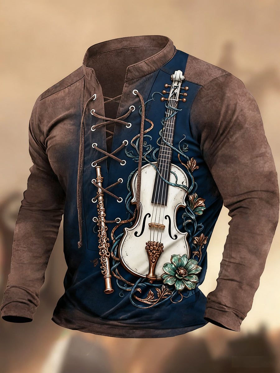 Męska koszulka z długim rękawem w stylu retro z wysokim dekoltem w stylu zachodnim
