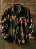 Retro Western Highway tekstura wzór z nadrukiem Village V-Neck Koszula z długim rękawem w stylu Henry
