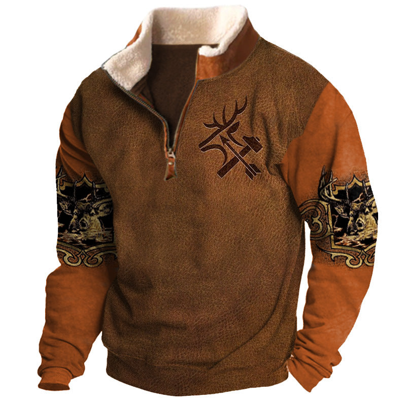 Męska koszulka z długim rękawem w stylu retro z wysokim dekoltem w stylu zachodnim