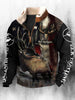 Retro Western Highway tekstura wzór z nadrukiem Village V-Neck Koszula z długim rękawem w stylu Henry