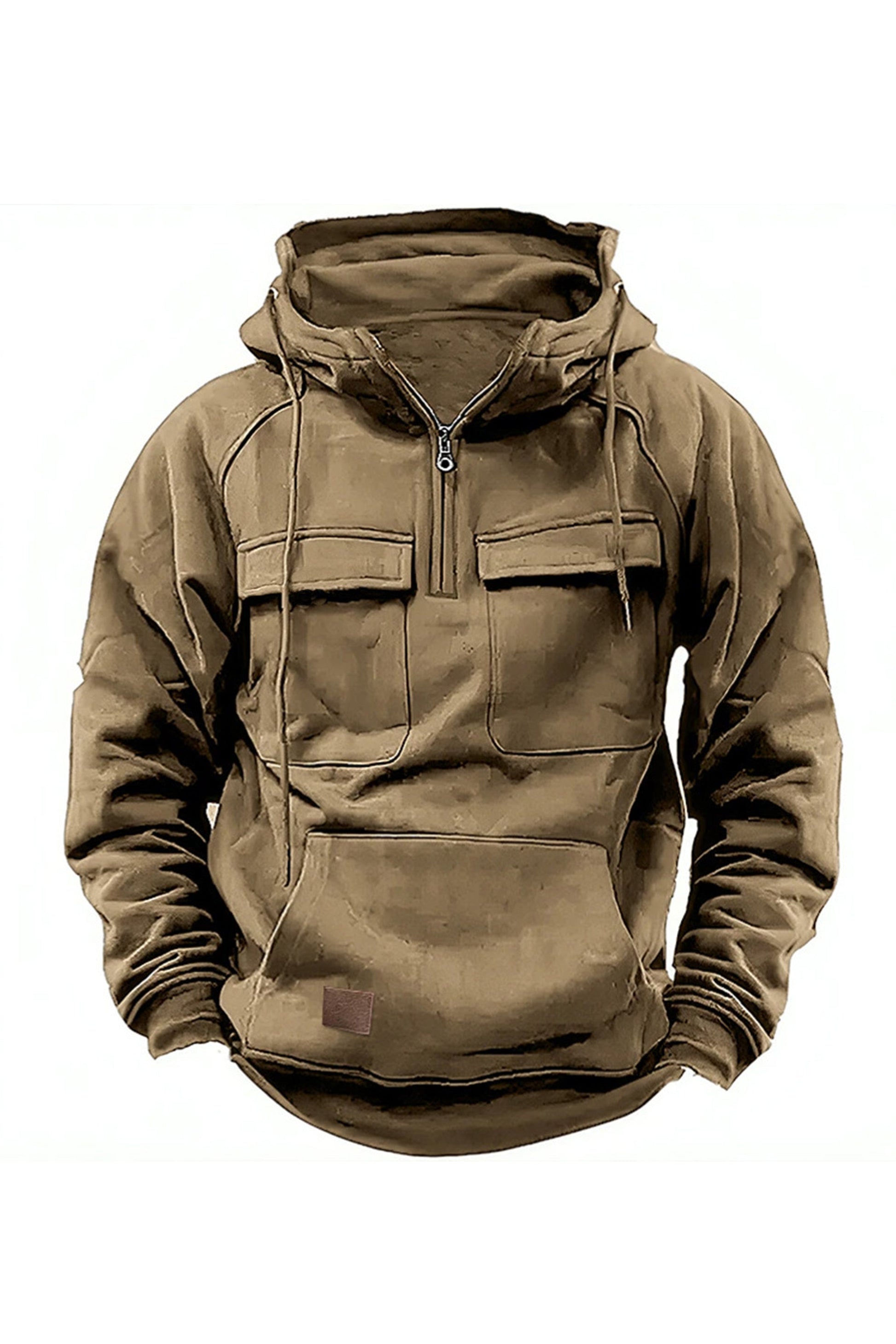 Męska koszulka sportowa typu bluza z taktycznym swetrem z kołnierzem typu Henry Stand Collar Retro Outdoor Casual Zipper