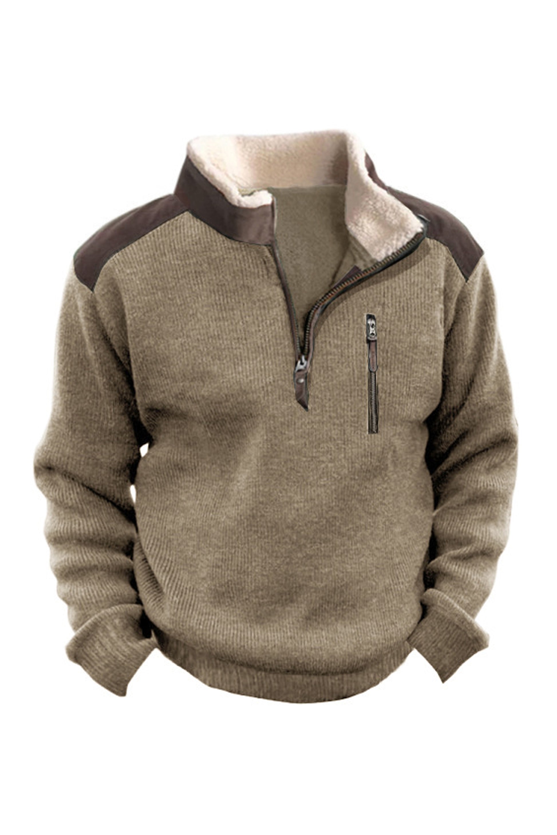 Męska koszulka sportowa typu bluza z taktycznym swetrem z kołnierzem typu Henry Stand Collar Retro Outdoor Casual Zipper