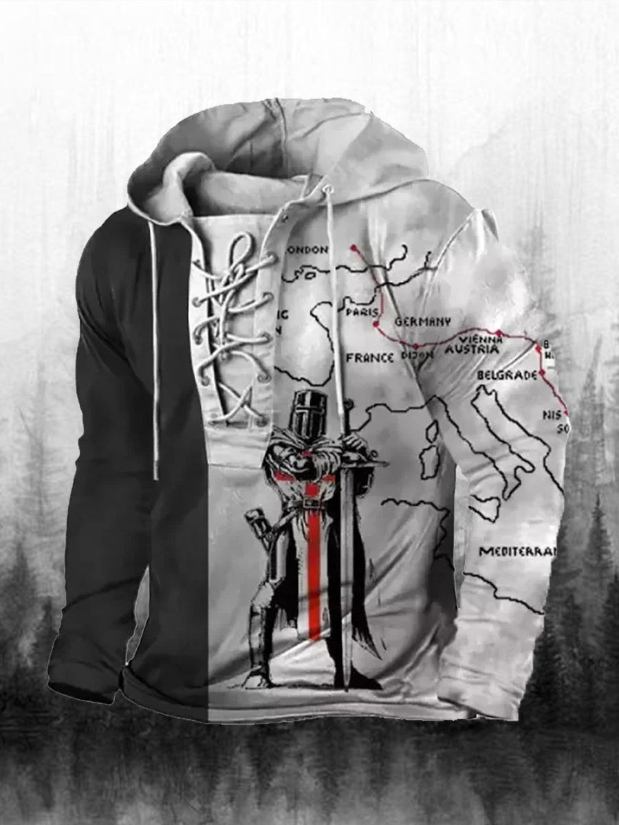 Męska bluza z kapturem z długim rękawem w stylu retro