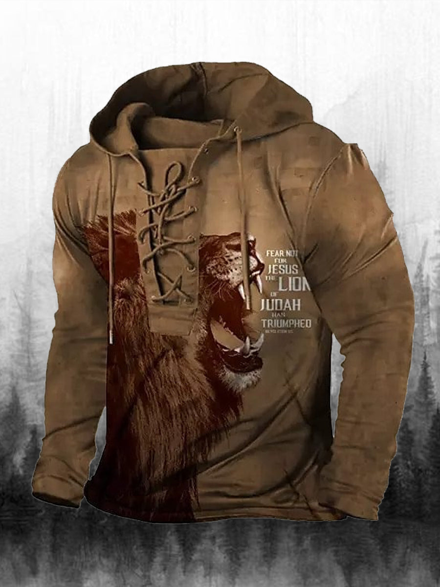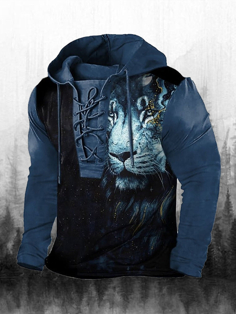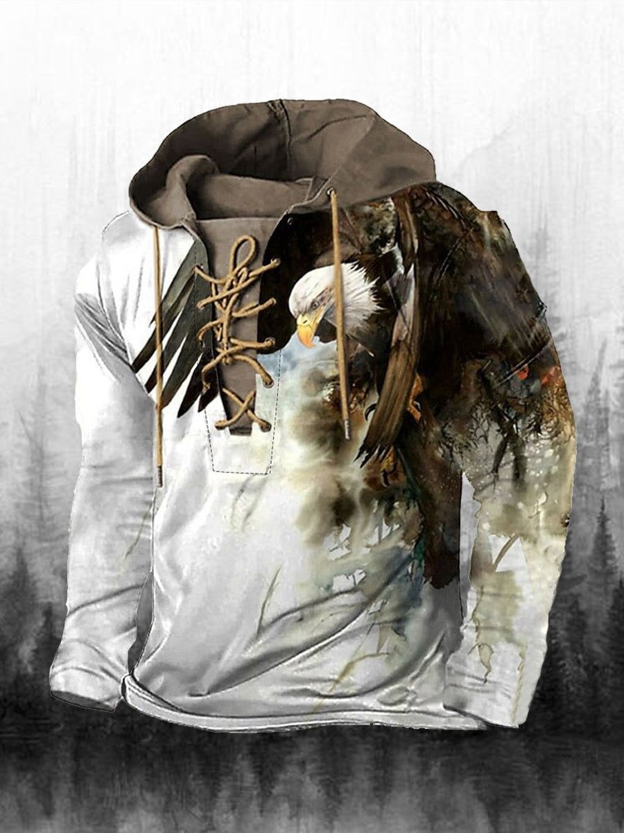 Męska bluza z kapturem z długim rękawem w stylu retro