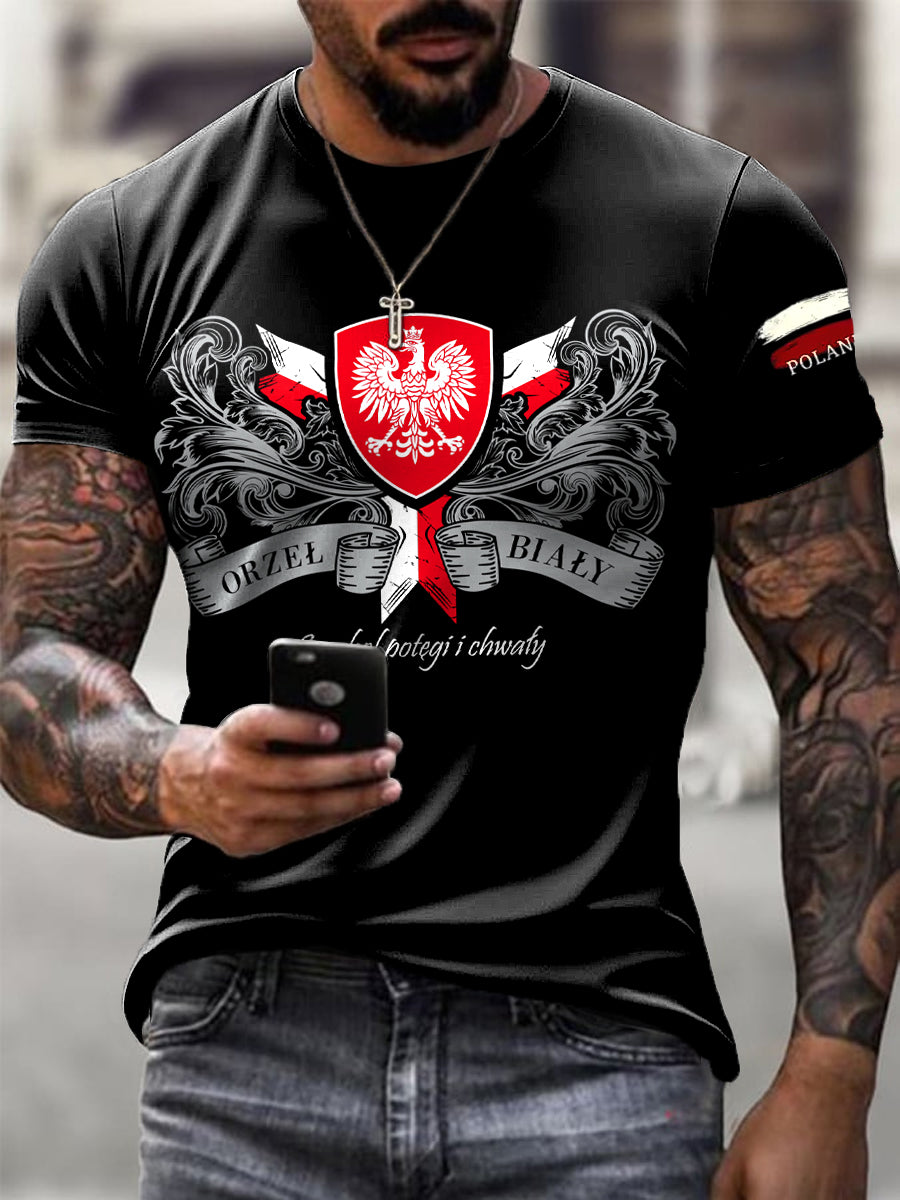 Męski Vintage Polski Orzeł Flaga Art Print Casual T-Shirt