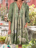 Retro Bawełniana sukienka Midi z długim rękawem w stylu vintage z dekoltem w serek w szpic