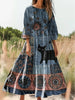 Retro Boho kwiatowy nadruk Vintage chic okrągły dekolt Bawełniana sukienka midi z długim rękawem