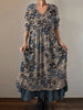 Retro Boho kwiatowy nadruk Vintage dekolt w szpic z podwójnym półrzędem bawełniana sukienka midi z długim rękawem