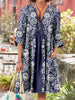 Retro Boho kwiatowy nadruk Vintage szyk w szpic Bawełniana sukienka midi z długim rękawem