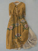 Retro boho kwiatowy nadruk vintage szykowny guzik z długim rękawem midi sukienka