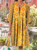 Retro Boho w kwiatowy wzór w stylu vintage chic z dekoltem w szpic bawełniana sukienka midi z długim rękawem