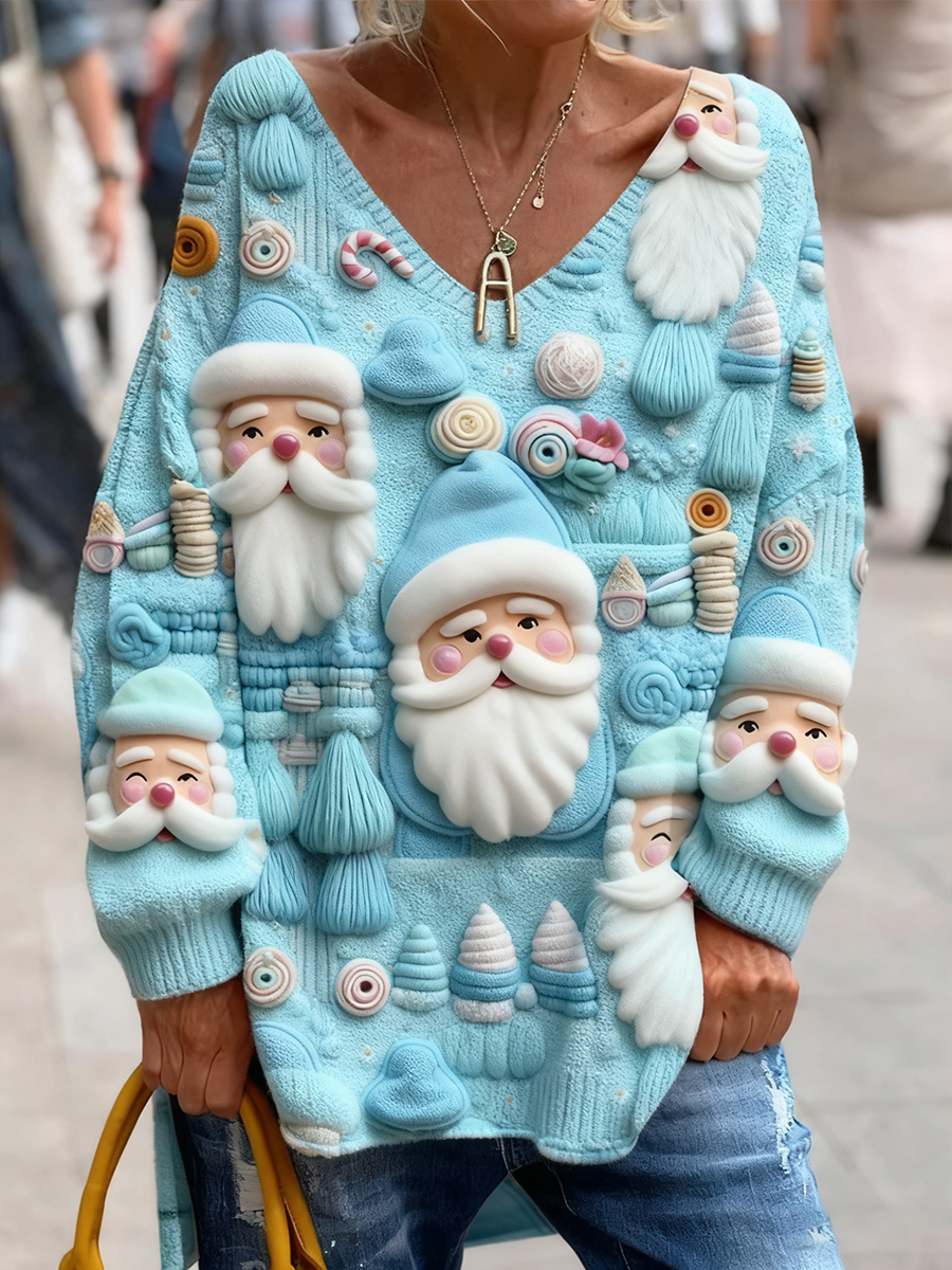 Retro Świąteczna zabawa i urocza drukowana modna załoga dekolt