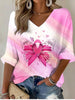 Różowa kokardka gradientowa damska dekolt w szpic Casual krótka koszulka