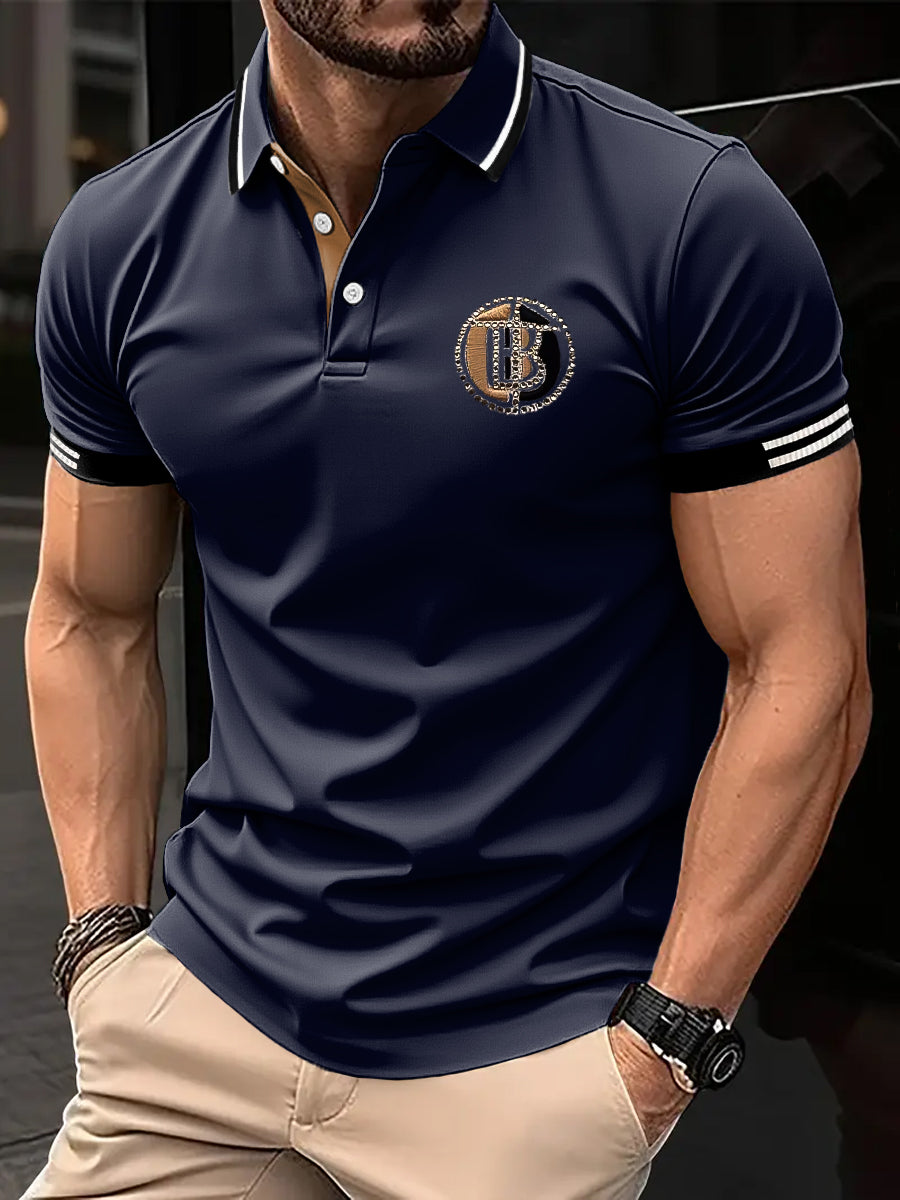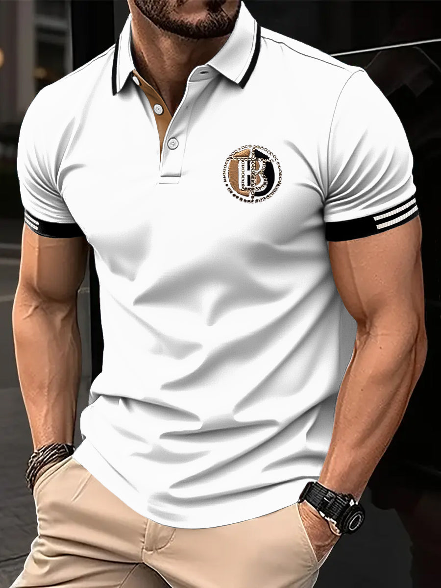 Męska koszulka polo biznesowa z nadrukiem patchworku w stylu retro