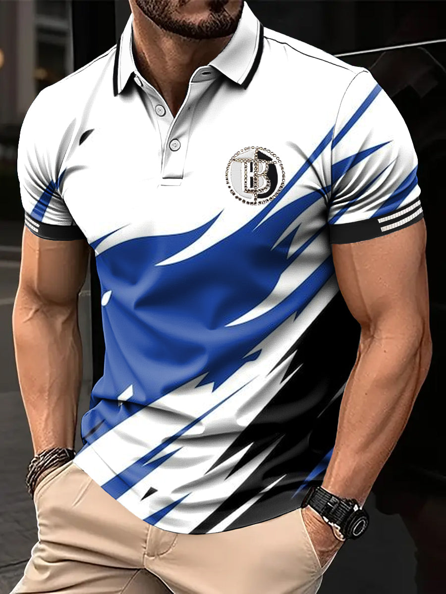 Męska retro abstrakcyjna geometryczna patchwork artystyczna koszulka polo casual