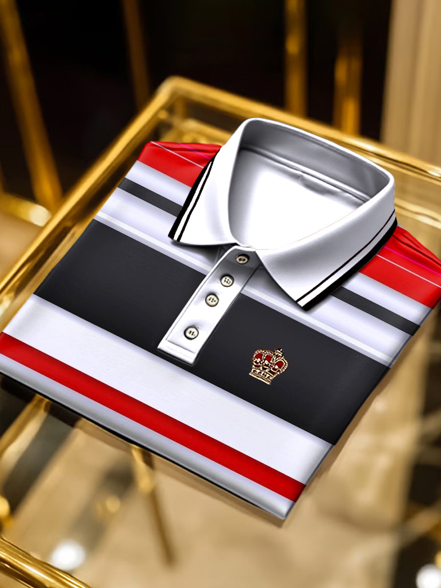 Biznesowa koszulka polo z krótkim rękawem w paski w stylu retro