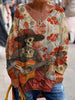 Vintage meksykański Dzień Zmarłych Art Print Casual Top z dekoltem w szpic