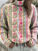 Retro Western Highway tekstura wzór z nadrukiem Village V-Neck Koszula z długim rękawem w stylu Henry