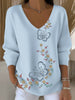 Retro Western Highway tekstura wzór z nadrukiem Village V-Neck Koszula z długim rękawem w stylu Henry