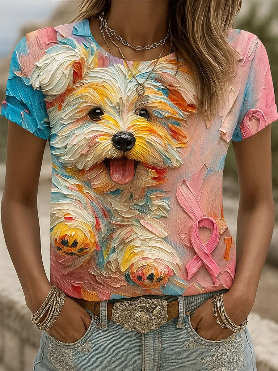 Damska wstążka z rakiem piersi bawełniana koszulka z nadrukiem zwierzęcym