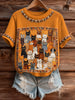 Damski artystyczny nadruk zwierzęcy wygodny top z dzianiny z krótkim rękawem