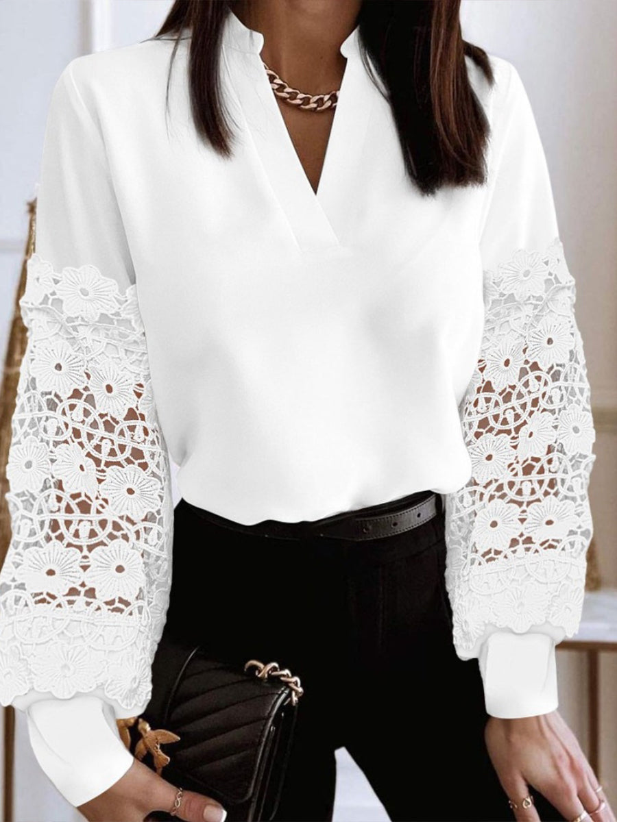Damskie koszule z długim rękawem i koronką z dekoltem w szpic