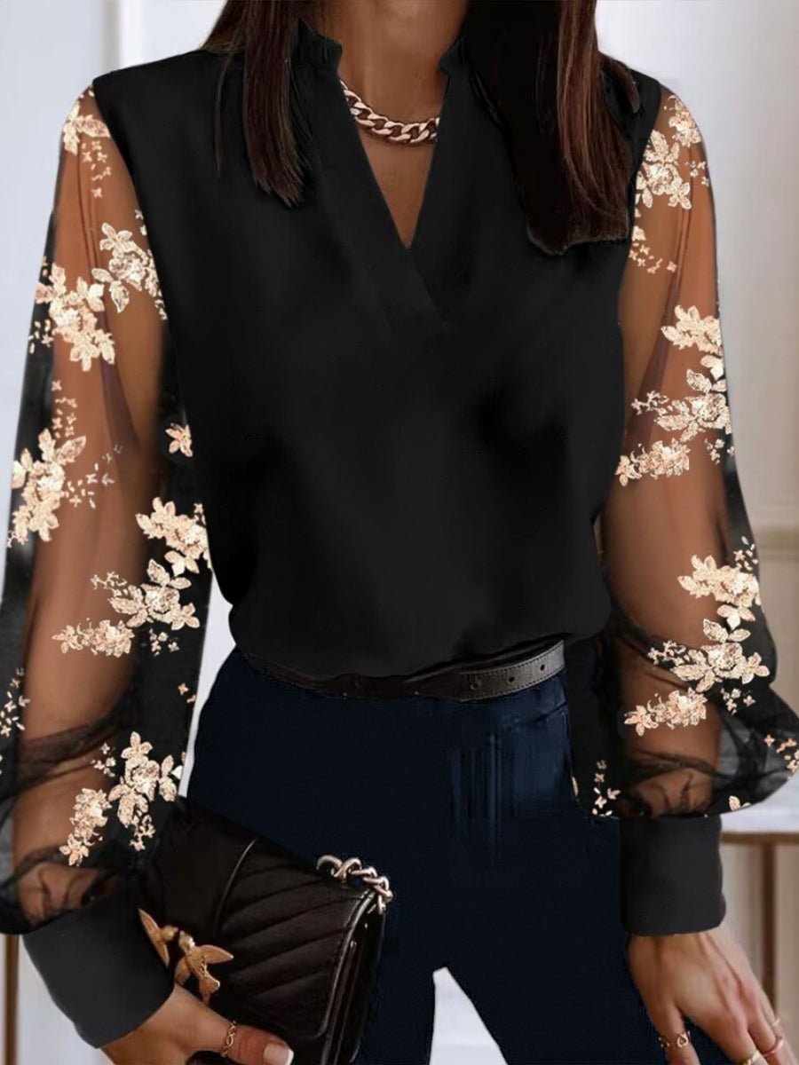Damskie koszule z długim rękawem i koronką z dekoltem w szpic